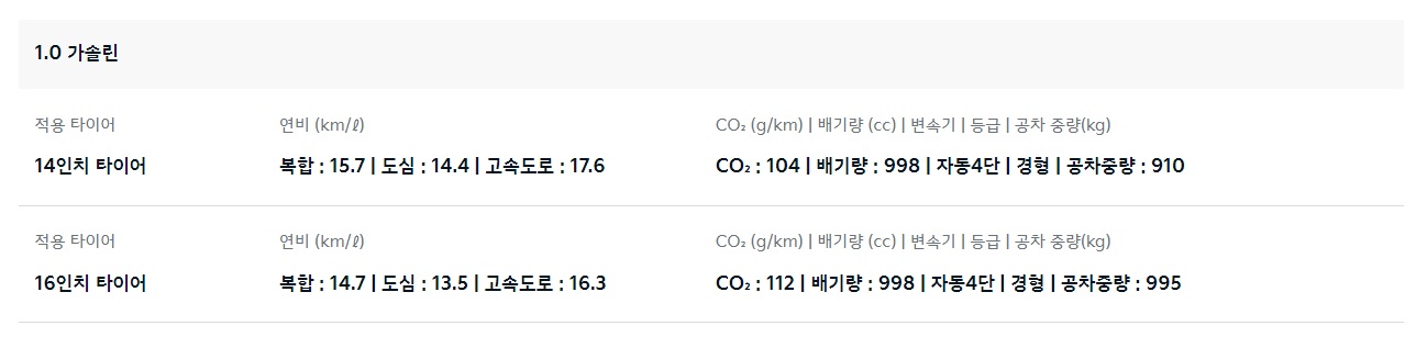 자동차 제원